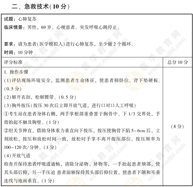 急救技術(shù)評分標(biāo)準(zhǔn)(樣題)