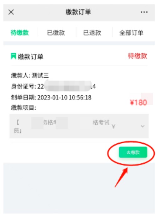 3.繳費(fèi)時必須填寫報名考生本人姓名和身份證號,否則無法進(jìn)行繳費(fèi),提醒所有考生提交務(wù)必仔細(xì)核對(他人代繳,請輸入?yún)⒓涌荚嚨目忌救诵畔?/span>)。