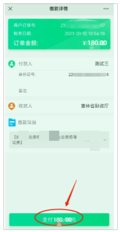 4、再次核對金額,點(diǎn)擊“支付”按鈕。如下圖。