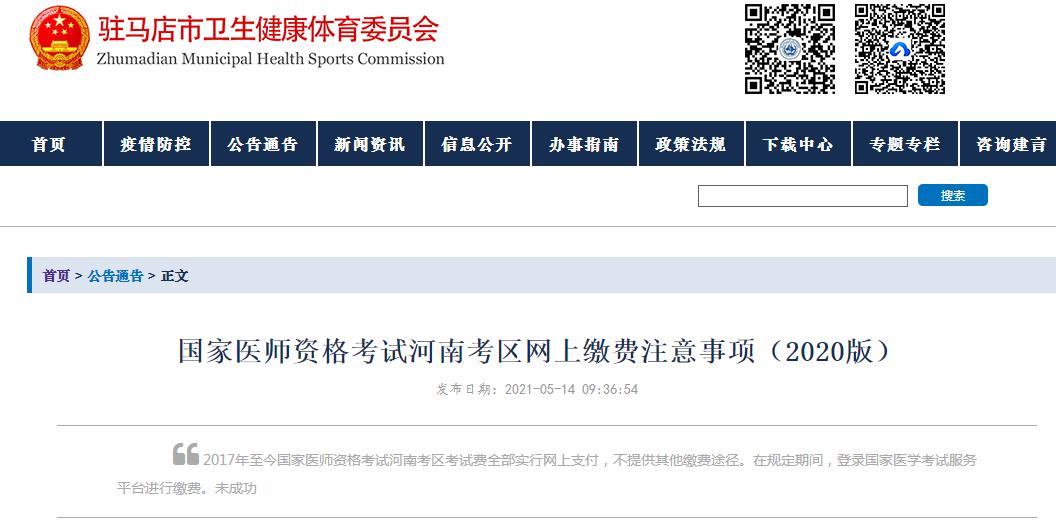 國家醫(yī)學(xué)考試網(wǎng)2021年駐馬店考點(diǎn)公衛(wèi)醫(yī)師技能繳費(fèi)提醒