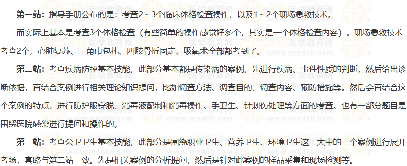 今年考試與往年考試形式相比變化是很大的,雖然也都是三站的考查。但具體內(nèi)容考場(chǎng)上卻是讓人猝不及防的?;厩闆r與前期考試大綱公布的考站內(nèi)容分?jǐn)?shù)、分值等是一致的。但是讓人沒(méi)有想到的是第一站臨床操作部分,都是按照最大量來(lái)的,并且第二三站的形式也是巨變??荚噧?nèi)容也非常多。