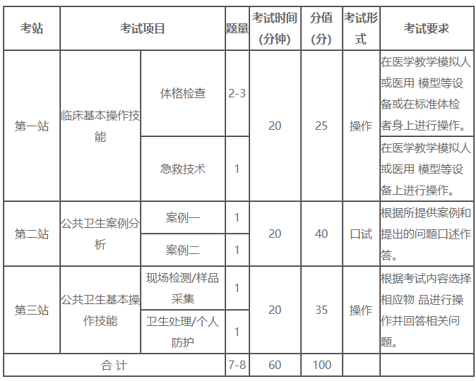 2022年公衛(wèi)執(zhí)業(yè)醫(yī)師實(shí)踐技能考試各站考試內(nèi)容分布