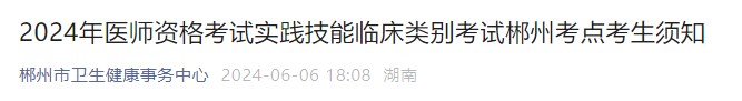 湖南郴州2024年公衛(wèi)醫(yī)師技能考試安排|考試基地已公布!