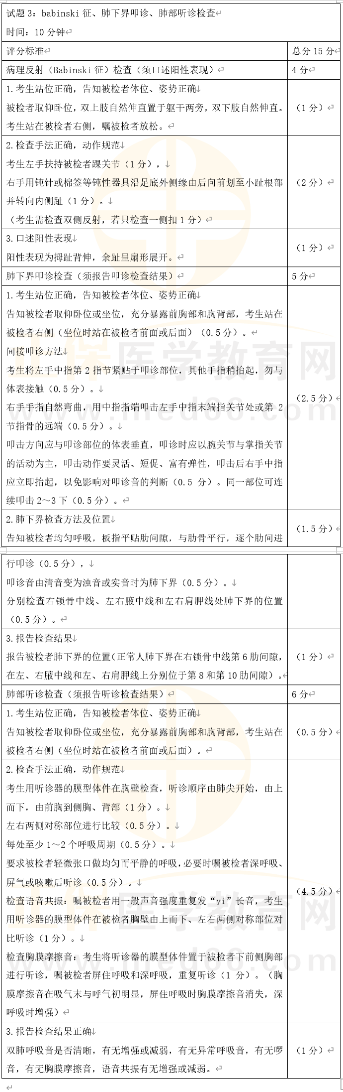 實踐技能第一站(體格檢查+急救技術)考試時間為20分鐘,分值占比為25分。
