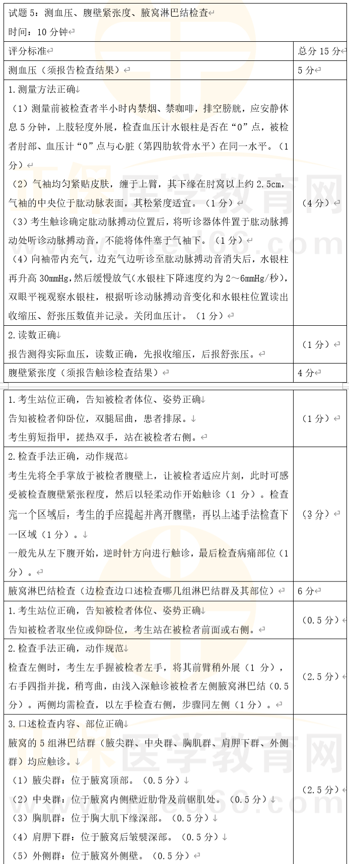考試形式在醫(yī)學(xué)教學(xué)模擬人或醫(yī)用模型等設(shè)備或在標(biāo)準(zhǔn)體檢者身上進(jìn)行操作。