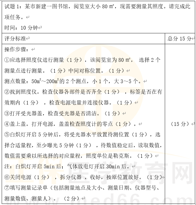 2022年公衛(wèi)醫(yī)師實踐技能「現(xiàn)場檢測/樣品采集」考前模擬卷1(含評分標準)如下,2022年公衛(wèi)執(zhí)業(yè)醫(yī)師實踐技能考試在即,醫(yī)學(xué)教育網(wǎng)整理了實踐技能考前指導(dǎo)手冊(查看活動詳情>>),包含技能各站精選模擬試題,購買2022年公衛(wèi)執(zhí)業(yè)醫(yī)師無憂實驗班,贈送價值480元的技能特色班,技能沖刺必備>>