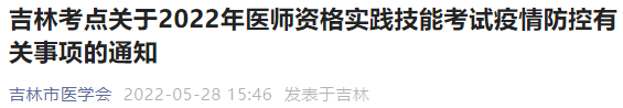 吉林考點2022年醫(yī)師資格實踐技能考試將于6月13日如期進(jìn)行。鑒于當(dāng)前疫情防控形勢,為切實保障廣大考生的生命安全和身體健康,確保此次技能考試安全平穩(wěn)順利實施,根據(jù)省醫(yī)考辦及我市2022年醫(yī)考防疫工作相關(guān)要求,現(xiàn)將有關(guān)事宜通知如下: