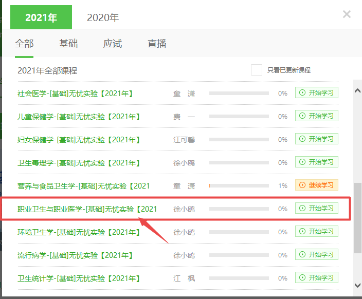 21年已付費學(xué)員《職業(yè)衛(wèi)生與職業(yè)醫(yī)學(xué)》看課位置