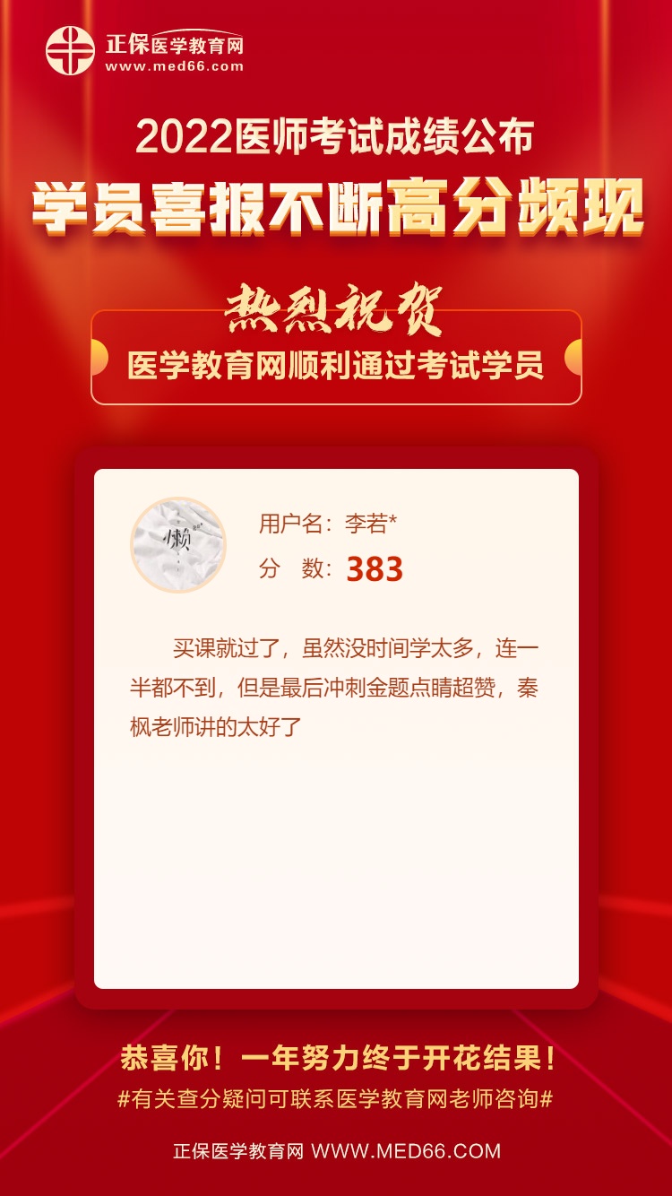 2022年醫(yī)師資格考試成績(jī)公布后,醫(yī)學(xué)教育網(wǎng)學(xué)員喜報(bào)不斷,高分頻現(xiàn)!在此醫(yī)學(xué)教育網(wǎng)小編熱烈祝賀各位順利通過考試的同學(xué)!同時(shí)也將大家成功的喜悅、備考心得一起分享給2023年考生。一起來看看吧!