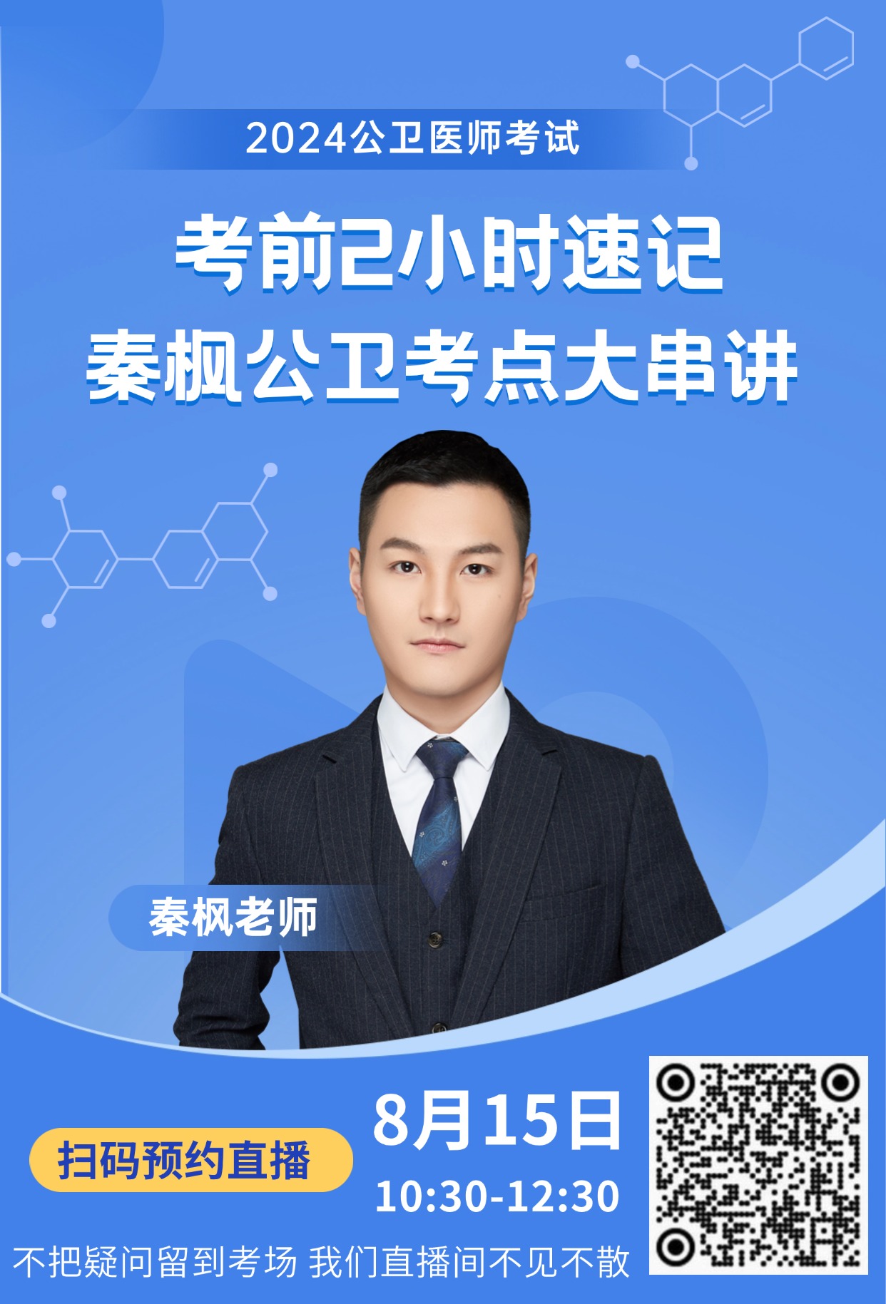 2024年公衛(wèi)醫(yī)師考試8月16日開考!考前如何利用最后時間拔高搶分?快來預(yù)約參與秦楓老師針對公衛(wèi)醫(yī)師考生的考點(diǎn)串講直播!考前2小時速記,不把疑問留到考場!