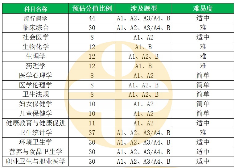 公衛(wèi)科目整體難度適中,部分題目較難,臨床及基礎(chǔ)人文科目相對較難。題目的考察深度加深,考生不能只留于表面定義,還要更加深入理解相關(guān)知識點內(nèi)容。題目考查點變的更加細致,哪怕一個角落的一句話都有可能出題。題目更加貼近臨床,與日常生活密切聯(lián)系,一個題目會綜合幾個科目內(nèi)容共同考查。目前題目各個選項差異性再減小,幾個選項看著都對,但實際上正確的只有一個,需要更加細致的去區(qū)分出考點。同時題干變長且考察的較靈活,有的題目較繞,拿分相對較為困難,而這些改變更加符合國家對應(yīng)用型人才的考察標(biāo)準(zhǔn)。