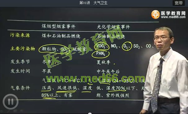 “煤煙型煙霧事件和光化學(xué)煙霧事件比較”屬于公衛(wèi)醫(yī)師考試《環(huán)境衛(wèi)生學(xué)》中大氣衛(wèi)生的考點(diǎn),這個(gè)知識點(diǎn)是重點(diǎn)內(nèi)容,在每年考試中都會涉及相關(guān)考點(diǎn),對于這個(gè)知識點(diǎn)考試大綱要求如下。今天和醫(yī)學(xué)教育網(wǎng)小編一起來看看徐小鷗老師是怎么講解這個(gè)知識點(diǎn)的。