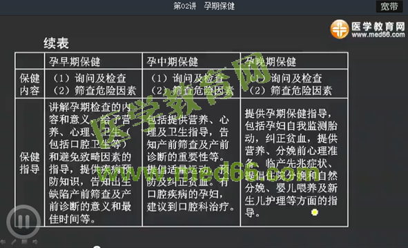 這個(gè)表格中將孕早期、孕中期和孕晚期的三個(gè)保健一一列出,然后將這三期的保健內(nèi)容都總結(jié)到一個(gè)表格中,這樣就可以通過表格很方便的進(jìn)行對(duì)比學(xué)習(xí)。