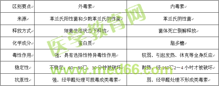 “細(xì)菌內(nèi)、外毒素的區(qū)別”主要從五個(gè)方面鑒別:來源、釋放方式、化學(xué)成分、毒性作用、穩(wěn)定性和抗原性。