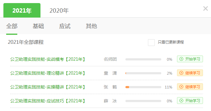下圖是公衛(wèi)助理醫(yī)師技能特色班課程,點擊購買>