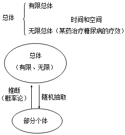 總體(population):根據(jù)研究目的確定的同質(zhì)的研究對象,其某項變量值的全體。