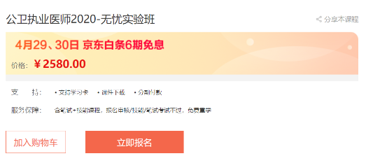 2020公衛(wèi)執(zhí)業(yè)醫(yī)師無憂實(shí)驗(yàn)班網(wǎng)絡(luò)輔導(dǎo)課京東6期免息進(jìn)行中!今年技能考試時(shí)間延期,有條不紊的跟著老師學(xué)習(xí)才是正解!遇到如此優(yōu)惠,定要抓住機(jī)會(huì)啊!