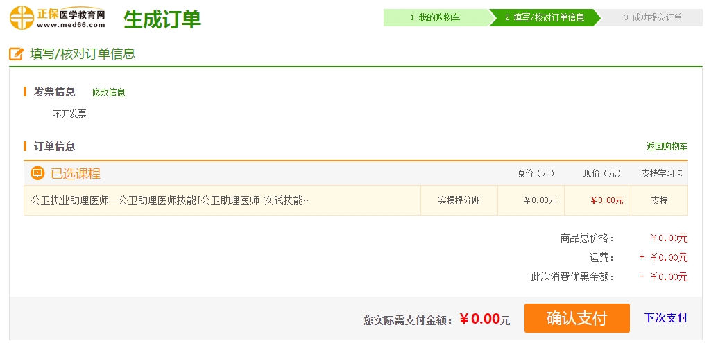 第二步,點(diǎn)擊“提交訂單”,進(jìn)入生成訂單頁面,如下: