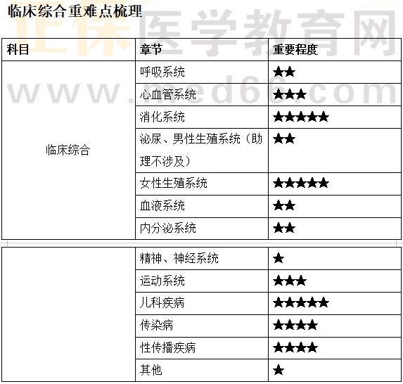 《臨床綜合》得分難度大?2022年公衛(wèi)執(zhí)業(yè)醫(yī)師如何復(fù)習(xí)?臨床綜合在公衛(wèi)醫(yī)師考試中出題比重約15%,由于平時接觸少,臨床綜合得分難度較大,歸結(jié)原因主要是對臨床專業(yè)知識不熟悉。沒有良好的知識積累,難以理解。單純記憶效果不佳。時間充足情況下務(wù)必打好基礎(chǔ),否則該科目得分水平難以提高??荚噺?fù)習(xí)重點應(yīng)以臨床工作常見病為主,從臨床表現(xiàn),臨床診斷要點和基本的治療方面去把握。