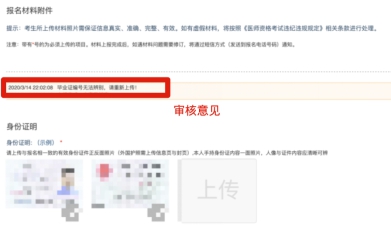 如果某圖片不符合要求,考生可以查看上傳界面最上方的審核意見(jiàn)進(jìn)行修改,修改成功后,等待再次審核即可。