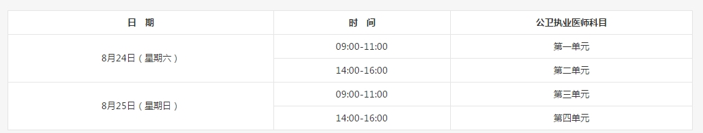 2019年公衛(wèi)執(zhí)業(yè)醫(yī)師考試時間: