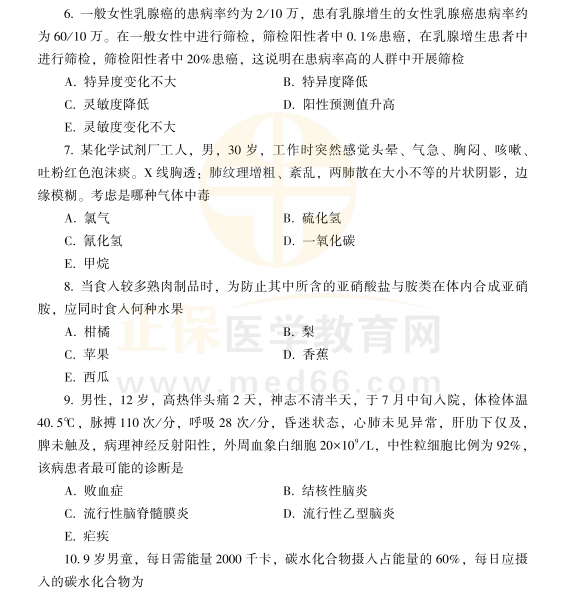 【試題練習(xí)】2021年公衛(wèi)執(zhí)業(yè)/助理醫(yī)師考試A2型試題測(cè)試6-10題