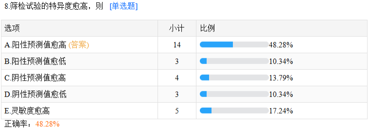 以上就是醫(yī)學(xué)教育網(wǎng)關(guān)于“篩檢試驗(yàn)的特異度越高,陽(yáng)性預(yù)測(cè)值越高【??颊_率48.28%】”的相關(guān)介紹,希望能夠幫助到大家,更多資訊盡在醫(yī)學(xué)教育網(wǎng)公衛(wèi)醫(yī)師欄目!