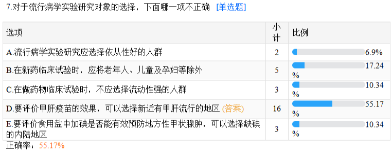 【正確率55.17%】對于流行病學實驗研究對象的選擇,下面哪一項不正確?2022年公衛(wèi)執(zhí)業(yè)/助理醫(yī)師考生有福啦,醫(yī)學教育網(wǎng)為您精心挑選了50道基礎(chǔ)摸底模擬測試題,快來測測你的水平吧!立即免費參與>>
