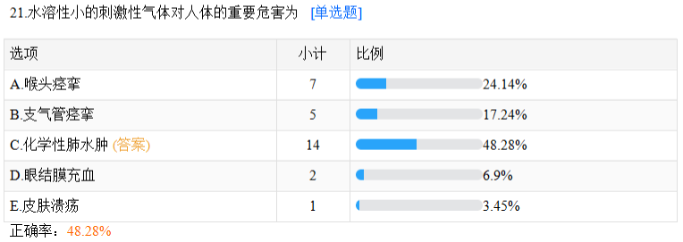 以上就是醫(yī)學(xué)教育網(wǎng)關(guān)于“正確率48.28%:水溶性小的刺激性氣體對(duì)人體的重要危害為?”的相關(guān)介紹,希望能夠幫助到大家,更多資訊盡在醫(yī)學(xué)教育網(wǎng)公衛(wèi)醫(yī)師欄目!