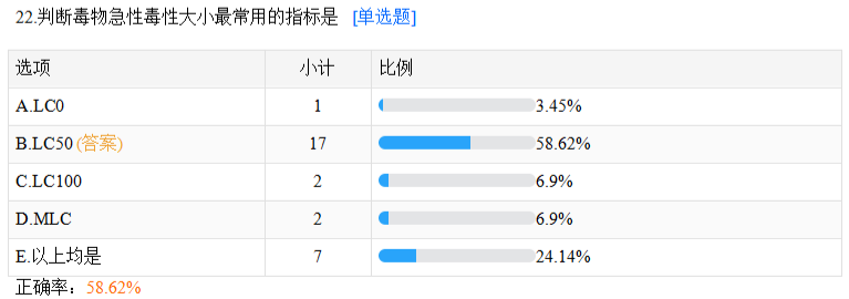 58.62%正確率:判斷毒物急性毒性大小最常用的指標(biāo)是?