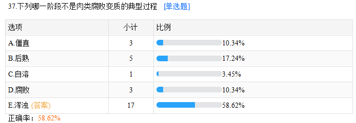 - · 下列哪一階段不是肉類腐敗變質的典型過程?58.62%正確率