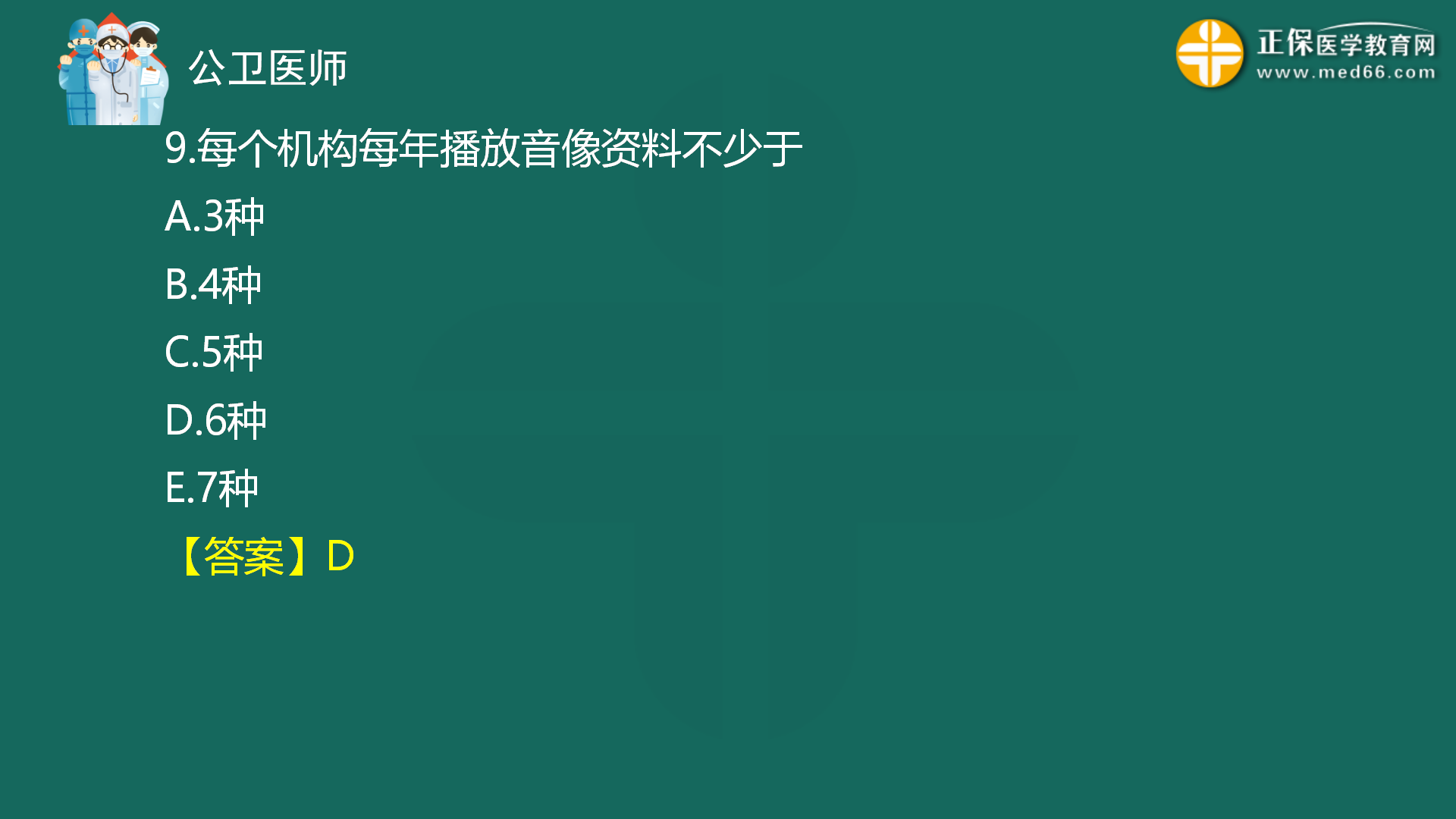 【6種】每個(gè)機(jī)構(gòu)每年播放音像資料不少于?全國2022年公衛(wèi)醫(yī)師??嫉诙拙砣肟诔掷m(xù)開放中(查看詳情>>),醫(yī)學(xué)教育網(wǎng)編輯整理分享疑難易錯(cuò)題有關(guān)內(nèi)容如下: