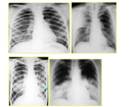 | 傳染性非典型肺炎 | 不同程度的片狀、斑片狀浸潤性陰影或呈網(wǎng)狀改變,進展迅速者呈大片狀陰影 |