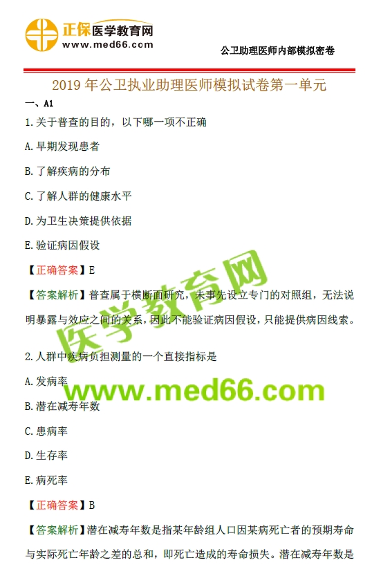 附件下載:2019年公衛(wèi)執(zhí)業(yè)助理醫(yī)師筆試第一單元模考試卷