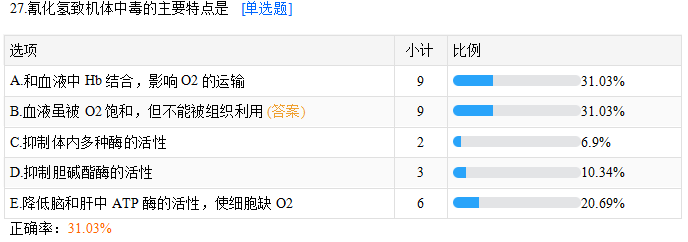 氰化氫致機體中毒的主要特點是???颊_率31.03%,2022年公衛(wèi)執(zhí)業(yè)/助理醫(yī)師考生有福啦,醫(yī)學(xué)教育網(wǎng)為您精心挑選了50道基礎(chǔ)摸底模擬測試題,快來測測你的水平吧!立即免費參與>>