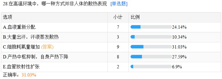 在高溫環(huán)境中,哪一種方式并非人體的散熱表現(xiàn)???颊_率31.03%
