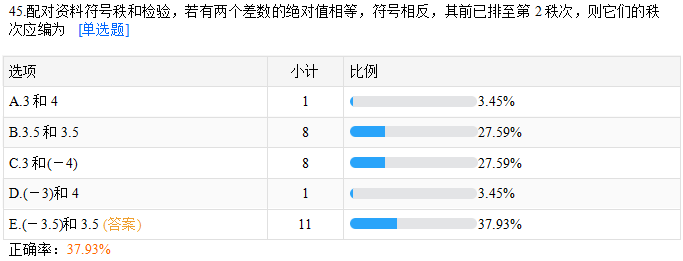 配對(duì)資料符號(hào)秩和檢驗(yàn),若有兩個(gè)差數(shù)的絕對(duì)值相等,符號(hào)相反,其前已排至第2秩次,則它們的秩次應(yīng)編為