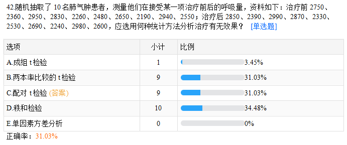隨機(jī)抽取了10名肺氣腫患者,測(cè)量他們?cè)诮邮苣骋豁?xiàng)治療前后的呼吸量...2022年公衛(wèi)執(zhí)業(yè)/助理醫(yī)師考生有福啦,醫(yī)學(xué)教育網(wǎng)為您精心挑選了50道基礎(chǔ)摸底模擬測(cè)試題,快來測(cè)測(cè)你的水平吧!立即免費(fèi)參與>>