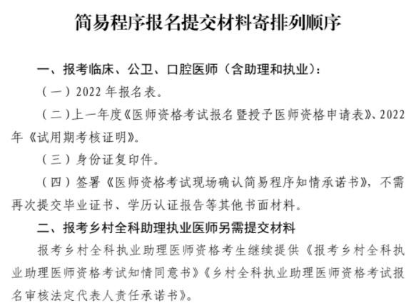 2022年公衛(wèi)醫(yī)師簡易程序報名提交材料寄排列順序(駐馬店考點)