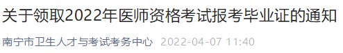 南寧市2022年醫(yī)師資格考試報(bào)考畢業(yè)證領(lǐng)取4月8日-4月29日