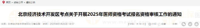 北京經(jīng)濟(jì)技術(shù)開發(fā)區(qū)官方發(fā)布2025年醫(yī)師資格考試報(bào)名審核時(shí)間|要求,請(qǐng)相關(guān)考生及時(shí)查看官方通知要求,按時(shí)參與報(bào)名審核。