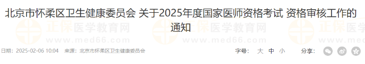 要求社保!北京懷柔區(qū)2025年醫(yī)師資格考試報名審核通知已出。請相關(guān)考生及時查看官方通知要求,按時參與報名審核。