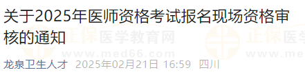 四川成都市龍泉驛區(qū)2025年醫(yī)師資格考試報名現(xiàn)場資格審核的通知,現(xiàn)場資格審核時間為2025年2月25日——2月27日(上午9:00-11:30,下午13:00-16:30)。醫(yī)學(xué)教育網(wǎng)小編整理官方通知如下: