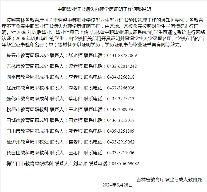 ●本省中專畢業(yè)證丟失需提供學(xué)歷證明(由各地、各校負(fù)責(zé)對學(xué)生學(xué)歷情況進(jìn)行證明,具體聯(lián)系方式見下圖);