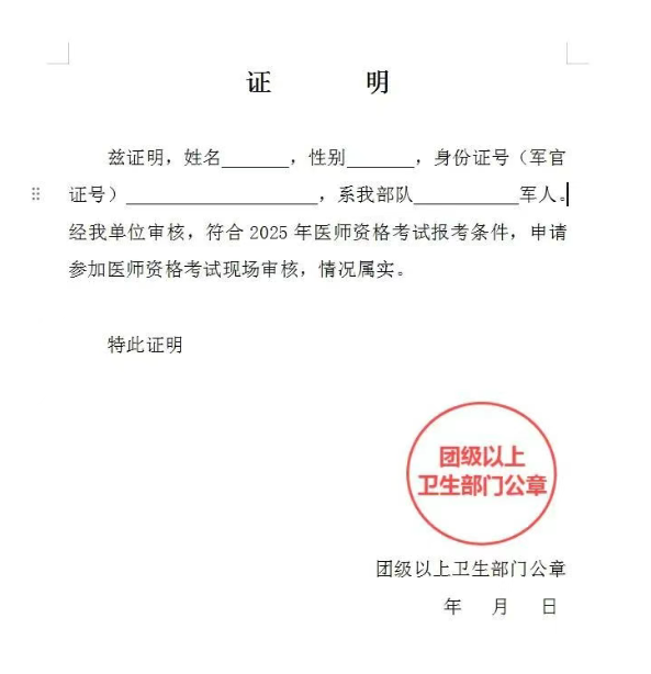 現(xiàn)役軍人需提供團(tuán)級以上衛(wèi)生部門蓋章的審核證明(下載方式見文末)