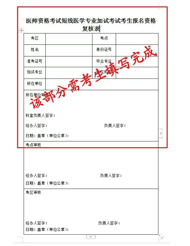 報考執(zhí)業(yè)醫(yī)師短線加試(院前急救、兒科)的考生還需提交《醫(yī)師資格考試短線醫(yī)學(xué)專業(yè)加試考試考生報名資格復(fù)核表》樣式如下(下載方式見文末),軍事醫(yī)學(xué)加試無需填寫;