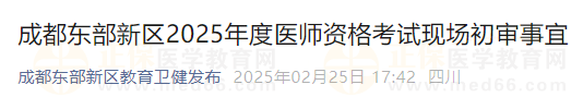 四川成都東部新區(qū)2025年度公衛(wèi)醫(yī)師資格考試現(xiàn)場(chǎng)初審事宜