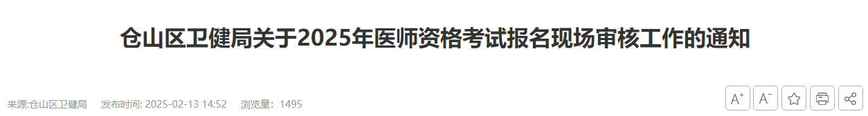2025年度醫(yī)師資格考試報(bào)名已開(kāi)始,請(qǐng)于2025年2月8日10時(shí)~2月21日24時(shí)及時(shí)登陸“國(guó)家醫(yī)學(xué)考試網(wǎng)”進(jìn)行填報(bào)。根據(jù)《醫(yī)師資格考試暫行辦法》和《福州市衛(wèi)生健康委員會(huì)關(guān)于2025年全國(guó)醫(yī)師資格考試福建考區(qū)福州考點(diǎn)考生報(bào)名須知》的文件精神,倉(cāng)山區(qū)報(bào)名點(diǎn)醫(yī)師資格考試現(xiàn)場(chǎng)審核確認(rèn)時(shí)間為2025年2月25至3月3日(工作日時(shí)間),我區(qū)現(xiàn)場(chǎng)審核安排如下: