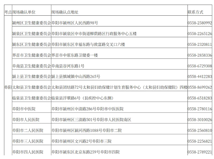 (五)阜陽考點(diǎn)各報(bào)名點(diǎn)及咨詢聯(lián)系電話: