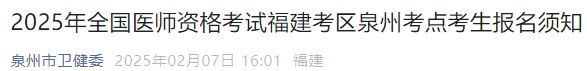 2025年醫(yī)師資格考試(福建泉州考點)報名審核時間安排及要求已公布!請相關(guān)考生及時查看官方通知要求,按時參與報名審核。